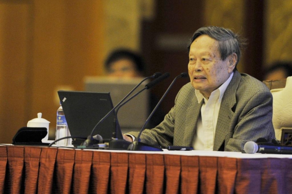 2014年4月14日,杨振宁在浙江大学演讲。新华社发(龙巍 摄)