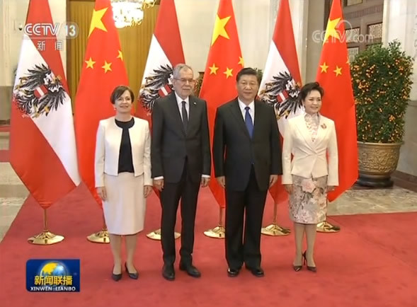 习近平欢迎范德贝伦首次来华进行国事访问并出席博鳌亚洲论坛年会。习近平指出,总统先生率库尔茨总理及多位部长组成的高级别大型代表团访华,在中奥交往史上尚属首次,充分体现了总统本人及奥地利政府对发展中奥关系的高度重视。总统先生还将到中国人民英雄纪念碑前敬献花圈,体现了对中国人民的尊重和友好情谊。奥地利是中国在欧洲的重要合作伙伴。中奥两国都具有悠久历史和灿烂文化,两国人民彼此怀有友好感情。库尔茨总理领导的奥地利新一届政府将积极发展对华关系和“一带一路”倡议首次写入执政协议,中方对此表示赞赏。中方愿同奥方一道,共同挖掘和释放两国合作潜能,播撒更多友谊与合作的种子,更好造福两国人民。