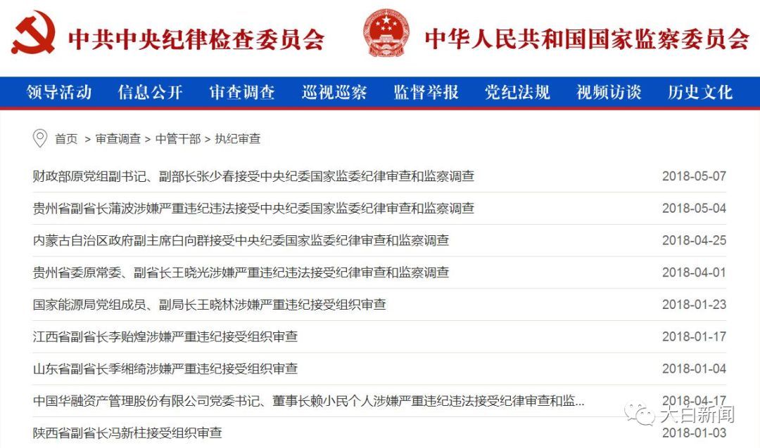 今日,从中央纪委国家监委网站“审查调查-中管干部-执纪审查”一栏注意到:今年来,已有9“虎”落马被查。