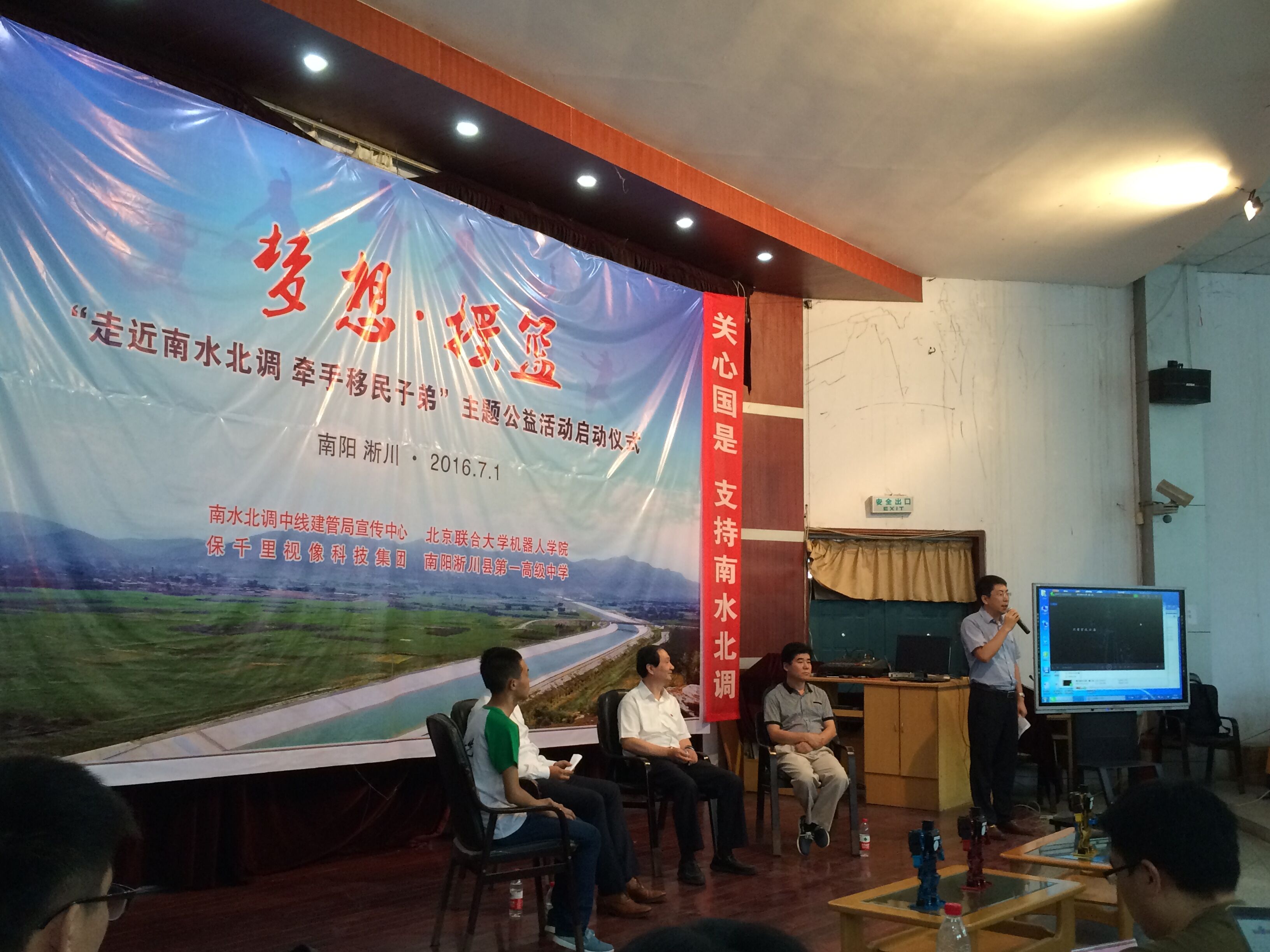 7月2日讯 7月1日,“梦想•摇篮—走近南水北调 牵手移民子弟”主题公益活动在河南省南阳市淅川县第一中学正式启动。淅川县移民应届高中毕业生和淅川第一中学高中学生近200余人,与来自千里之外的南水北调中线建管局宣传中心、北京联合大学及机器人学院、保千里视像科技集团等单位,近距离走近南水北调,面对面地沟通交流,畅谈交流大学青春梦想。