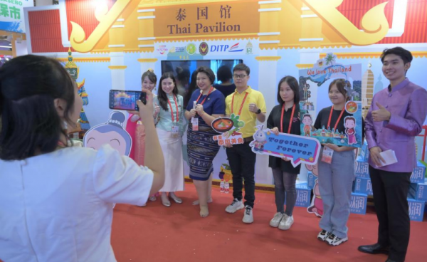 9月8日,中外嘉宾在泰国展区前合影